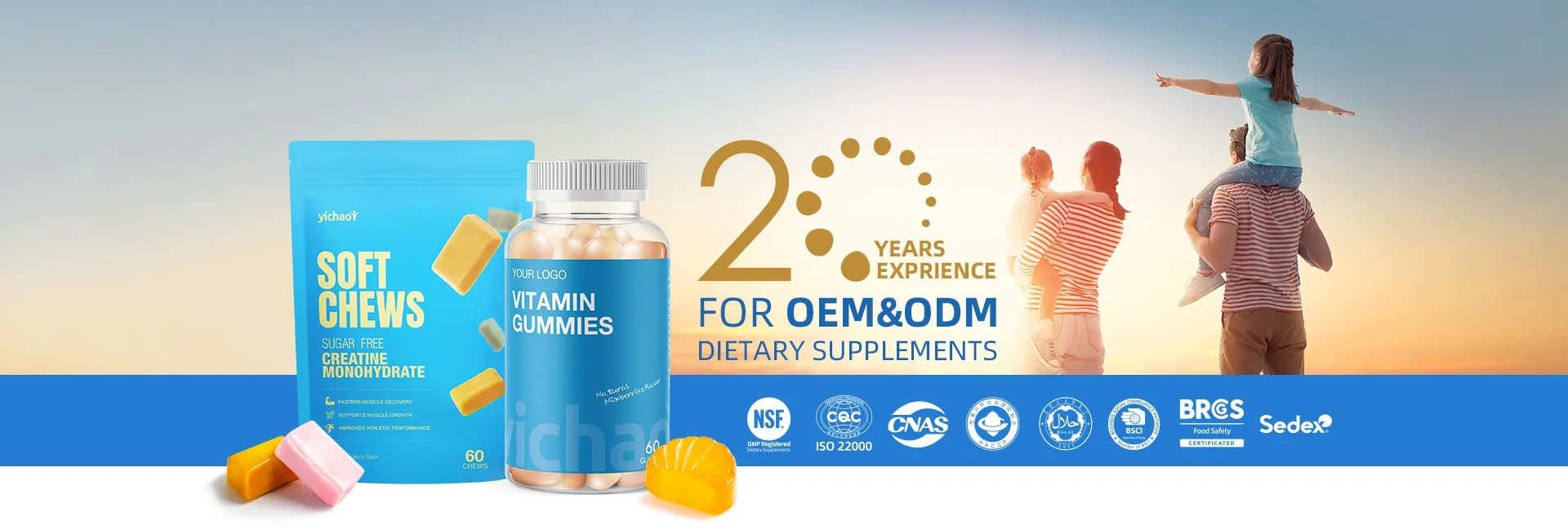 YICHAO is one of the leading contract manufacturer of healthy nutrition and dietary supplements. The production range covers vitamin gummies, soft capsules, tablets, powders and other dosage forms.